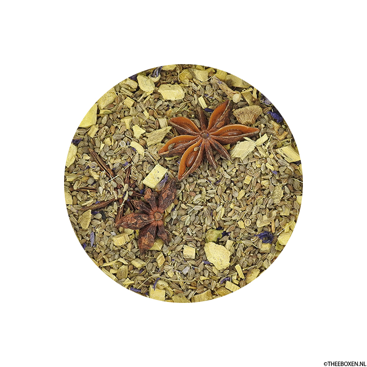 Anijs, zoethoutwortel (26,5%), steranijs, mallowbloemen, natuurlijke smaakstoffen.